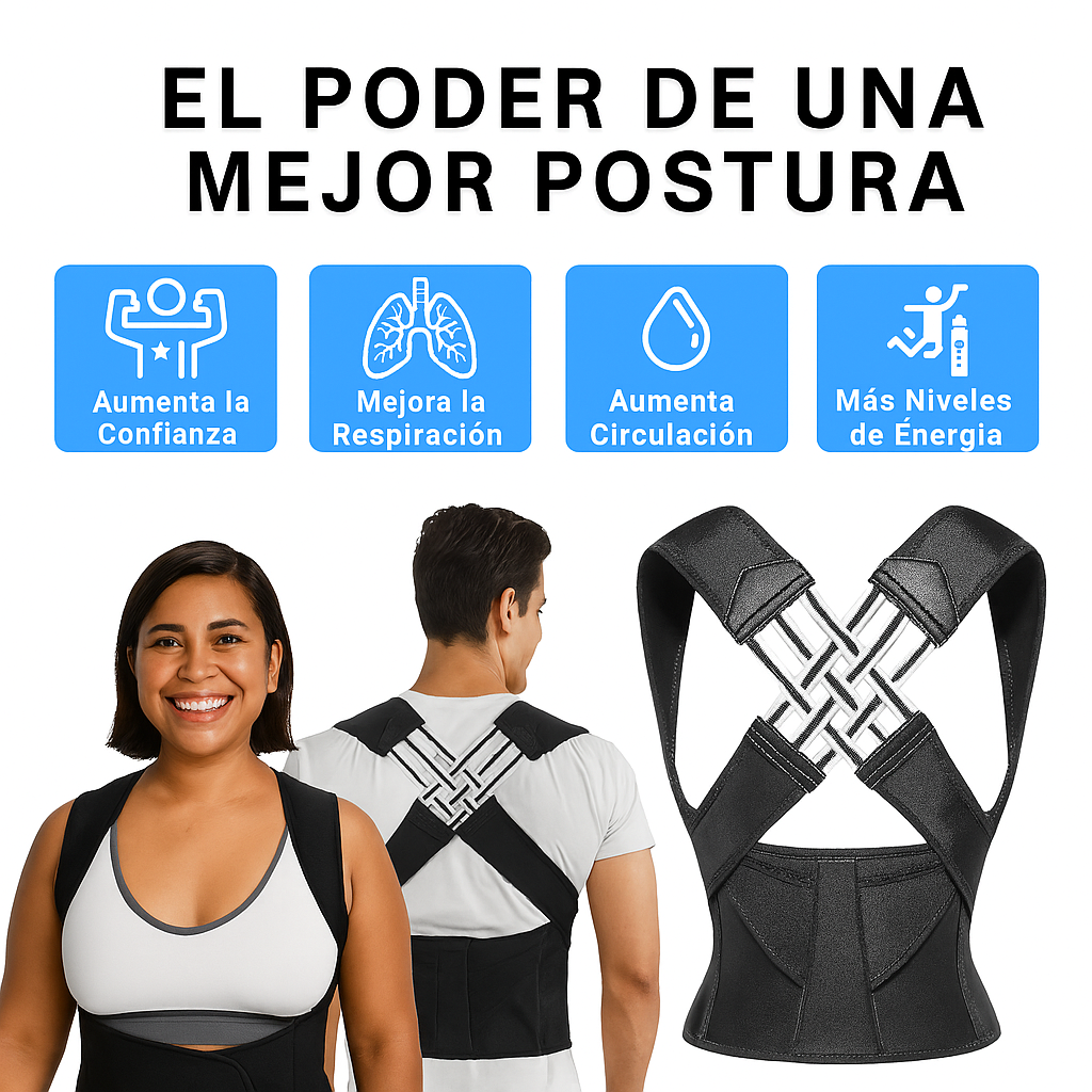 El Corrector de postura Voranex™ es un dispositivo que se usa sobre el cuerpo y que ayuda a alinear suavemente tu columna y hombros en una postura correcta. Al brindar soporte, entrena tu cuerpo para mantener una mejor postura de forma natural con el tiempo, reduciendo molestias y previniendo problemas futuros.